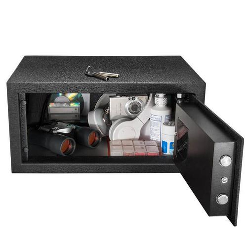 Protect valuables and belongings with the HQ100 Biometric Keypad Safe by Barska. The HQ100Safe features an all-new module that provides both a Biometric Fingerprint Scanner and a Numeric Digital Keypad. Store up to 30 unique fingerprints and 1 PIN Code into the HQ100s memory bank. The HQ100sadvanced BioSecure technology will only recognize the fingerprints that have been programmed into the safe, and the PIN Code acts as a backup incase the safe needs to be accessed by someone whose fingerprint has not been registered. The HQ100 by Barska is the perfect storage solution for small electronics, jewelry, medicines, important documents, and countless other valuables.