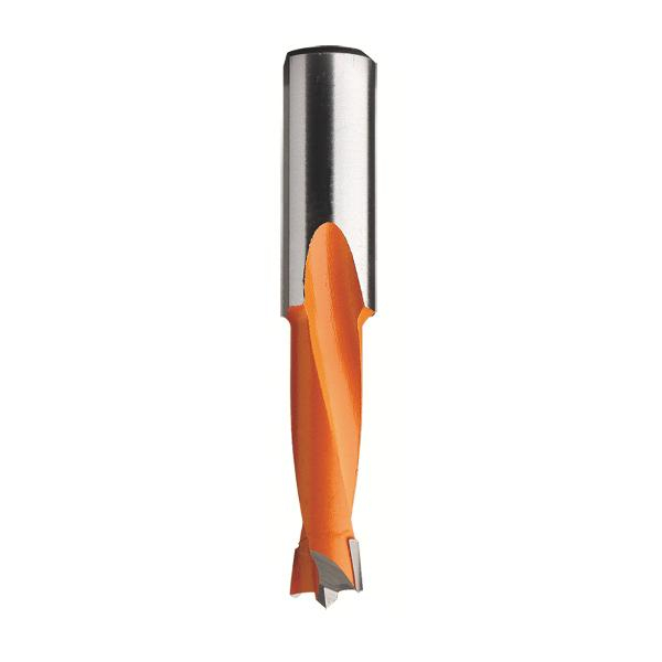 Made of super-strength steel, spiral portion coated with orange PTFE, HWM head with precision balanced center point. 2 Cutting edges, 2 spurs, 2 spiral flutes, parallel shank with driving flat and length adjusting screw.