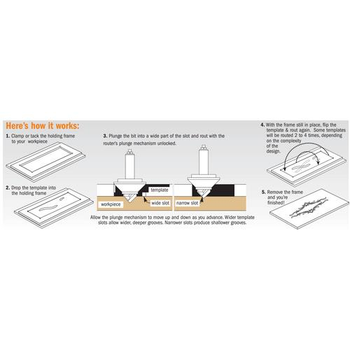 Thanks to the patented 3D Router Carver system, anyone with a plunge router can create beautiful designs in just minutes. Decorate doors, drawers, cabinets, furniture or just about any flat wooden surface with one or more of these designs. How does it work? The secret is in the 3D Router Carver Bit and the way that bit interacts with the carving Template. The V-Groove router bit is enclosed in a 45º cone-shaped guide. You rout with the plunge mechanism of your router unlocked, allowing the bit to move up or down as the router moves forward. As the slot in the template get wider, the bit moves down, producing a wider, deeper V-groove. As the slot gets narrower, the bit moves up, and the groove gets narrower and shallower. It sounds simple, and it is! (that’s why the system is patented worldwide).