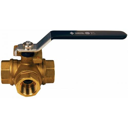 BBV75DTW, 3/4" 3-Way Brass Diverting Ball Valve T Flow