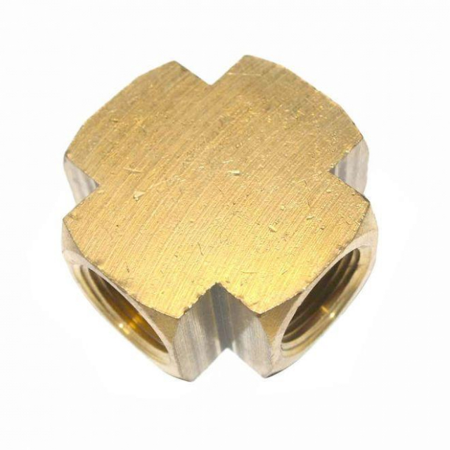 A Cross or 4-Way hose fitting has four connection ports, typically in the shape of a cross. This professional contractor / professional grade Cross fitting is machined from a solid brass stock using CNC machine center. Brass is corrosion resistant and provides a tight seal.