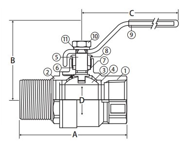 Jomar, 100-132G, JF-100GFxM Brass Ball Valve 3/8", Full Port, Male x Female Connections, 600 WOG