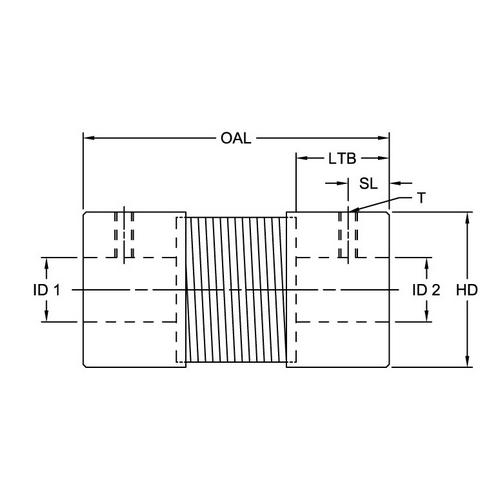 The U Type is the basis for all Uniflex couplings. It is a shaft-to-shaft flexible coupling with a simple one piece design, making it ideal for indexing, robotic or positioning applications. The U Type consists of a triple-wound flexible steel spring brazed to a steel hub at each end. This all steel design ensures optimum equipment protection in severe environments and/or high temperature applications. Regular and short versions are available for most sizes to accommodate different overall length requirements. Special hub or bore modifications are also possible. These units can be supplied with either pin holes or with keyways and set screws. Lovejoy does not recommend the reboring of uniflex couplings by customers due to potential damage to the brazed joint.