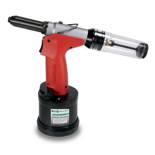 The professional-series air/hydraulic riveters are designed to be lightweight and well-balanced. Both are engineered to maximize stroke and pull force with a 3-jaw set. For added convenience, you can direct connect or use the attached swivel. Each tool is supplied with nosepieces to set rivets in all alloys, and comes complete with adjustment service wrenches, hydraulic fluid, fluid applicator, spare jaws, and a removable swivel air connection line with an air OFF/ON valve built in. An adjustable vacuum system control located inside the mandrel collection bottle allows you to control the force of air needed to hold the rivet in place. or, you may operate with the vacuum system turned off.