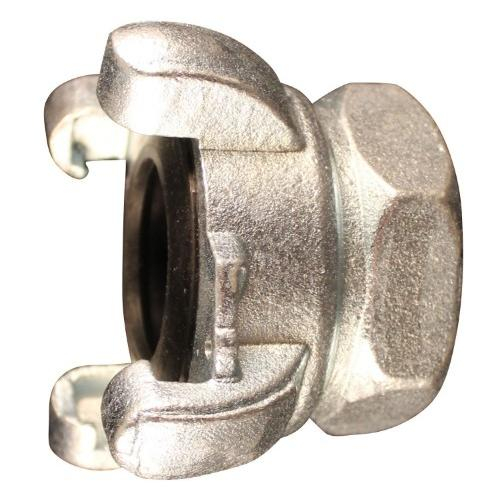 This 1-1/2" FNPT twist lock universal coupler is made of malleable iron and comes complete with safety clip and lanyard. These couplers with two claws are great for construction, highway maintenance, mining mobile compressors, agriculture and tool rental shop applications. Also known as crowfoot, claw type or Chicago style couplers, these twist lock universal couplers have a maximum working pressure of 150 PSI.