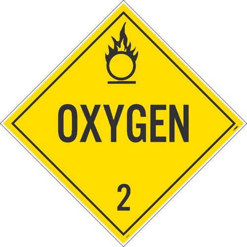 NMC, DL7P100, DOT Placard Sign, "Oxygen 2", 10" x 10", .0045 Vinyl, Pack 100