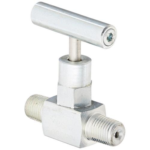 PIC Gauges, NV-CS-1/4-GS-180-MXM, NV Series 1/4" Mini T-Handle Needle Valve, Carbon Steel, 1/4" NPT, Soft Seat, Straight, Male x Male