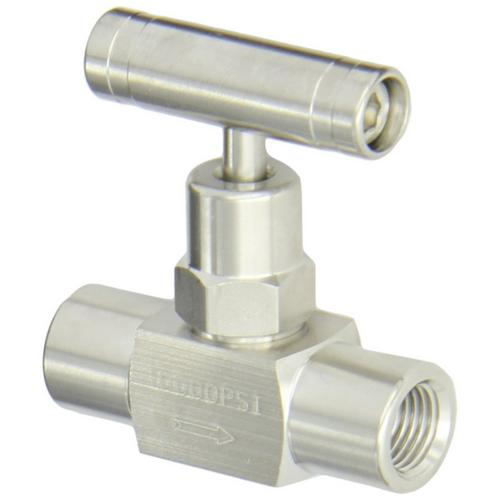 PIC Gauges, NV-SS-1/4-HS-180-FXF, NV Series 1/4" Mini T-Handle Needle Valve, 316SS, 1/4" NPT, Hard Seat, Straight, Female x Female