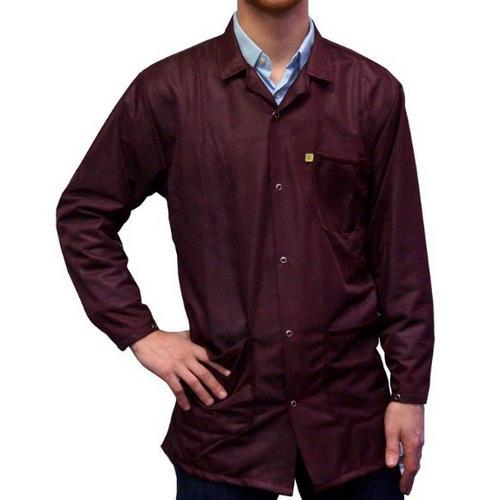 JKC 9022SPMR provides high quality ESD protection and made from a light-weight blend of 90% polyester and 10% conductive fibers. It features a snap front closure with a lapel-style collar and also has wrist-adjustment snaps and three roomy patch pockets.