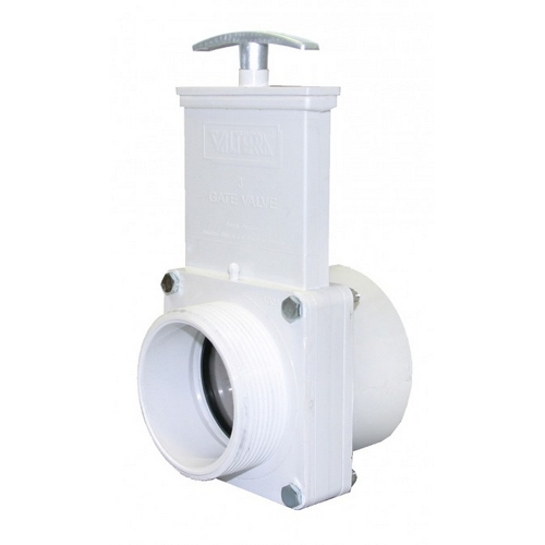 Valterra, 4305, 3" PVC White MPT x Slip Ends Gate Valve with Stainless Steel Paddle & Metal Handle