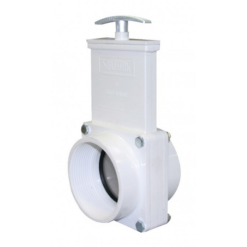 Valterra, 4307, 3" PVC White FPT x FPT Ends Gate Valve with Stainless Steel Paddle & Metal Handle
