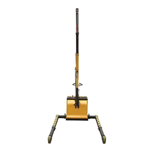 Fully powered shop crane (power hoist and power in/out boom) for moving loads quickly, easily, and safely. 24V DC drive and lift motor handles heavy-duty jobs. Ergonomic handle features easy-to-operate throttle with infinite adjustment of forward and reverse speeds, lift/ lower controls, proprietary safety-enhancing emergency reverse function, and horn. Includes an electromagnetic disc brake with automatic dead-man feature that activates when user releases the handle. Powered shop crane has two 12V, 80 - 95/Ah lead acid deep cycle batteries, integral battery charger, and battery level gauge. Poly-on-steel steer and load wheels. 3-4 hour operation at full charge - 8 hours when used intermittently. Includes rigid hook with safety latch.