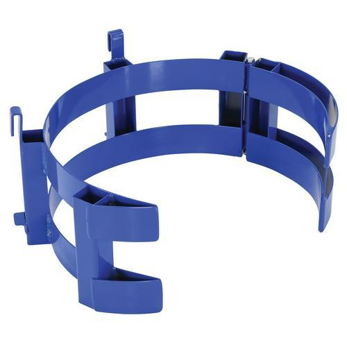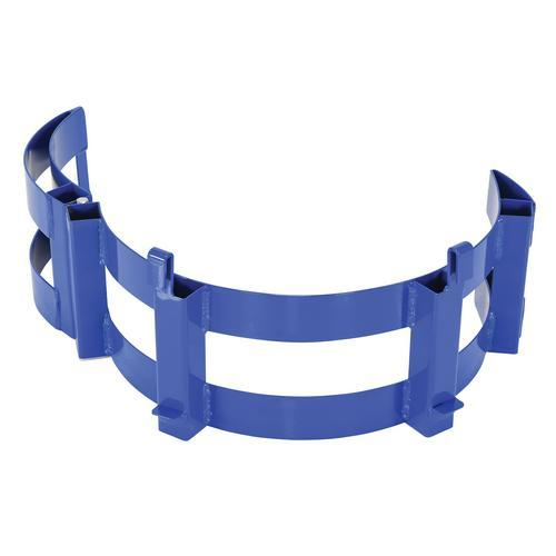 The FDC-30 attaches to the inner rim of the drum saddle so a 30 gallon steel, fiber or poly drum can be used. In any application where it is used with fiber or poly drums, it MUST BE used in conjunction with the adjusting arms