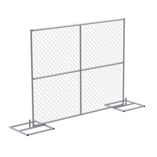 This Construction Safety Barrier is designed to temporarily secure your job site from theft, hazard liability, and dumping. Simply order starter unit then as many add-on units as necessary. Panel section and base pieces are made from steel tubing. Chain link fence is secured to barrier with steel ties.