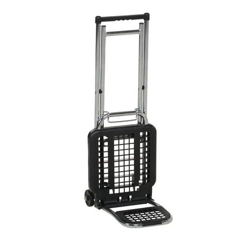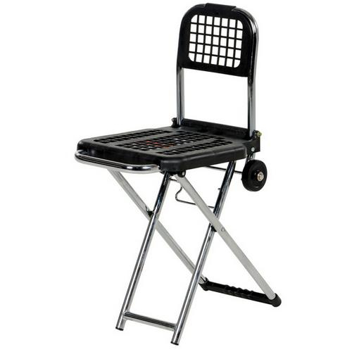 The Multi-Function Luggage Cart/Chair is constructed of both steel and nylon plastic. This Cart/Chair is perfect for use at trade shows for transporting products, literature and small parts. Conversion is very simple; from the cart position, lift the lip and move the bar from the lip to the molded double clip on the underside back of the chair seat. Bungee cord included.